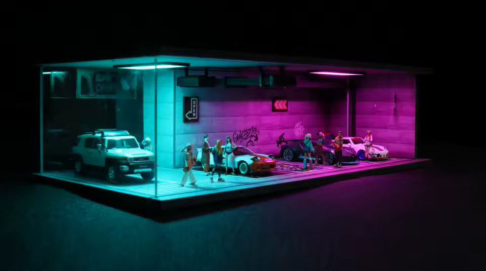 The detailed led lights give the diorama the true night vibe. Feel the Tokio underground drifting come true right in your bedroom.